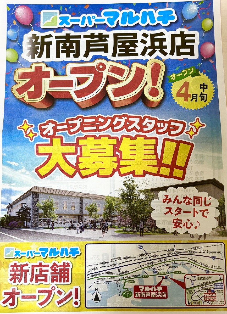 芦屋浜に新しく「スーパーマルハチ 新南芦屋浜店」さんが4月下旬頃にオープンを予定されているみたい!複合施設「otto terrace 南芦屋浜」内 #新規オープン #新店情報 #スーパー