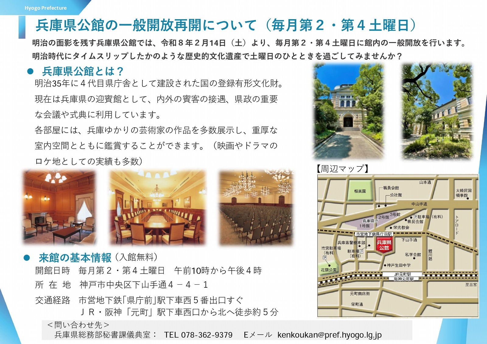 神戸元町にある「兵庫県公館」がリニューアル!2026年2月14日(土)より毎月第2・第4土曜日10時~16時で一般開放が再開されたということで、ご案内がありました。