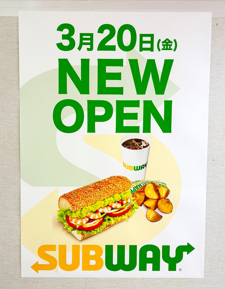 三宮・さんちかに「サブウェイ 神戸さんちか店」さんが2026年3月20日(金)朝8時にオープンを予定されているそうで、ご案内がありました。