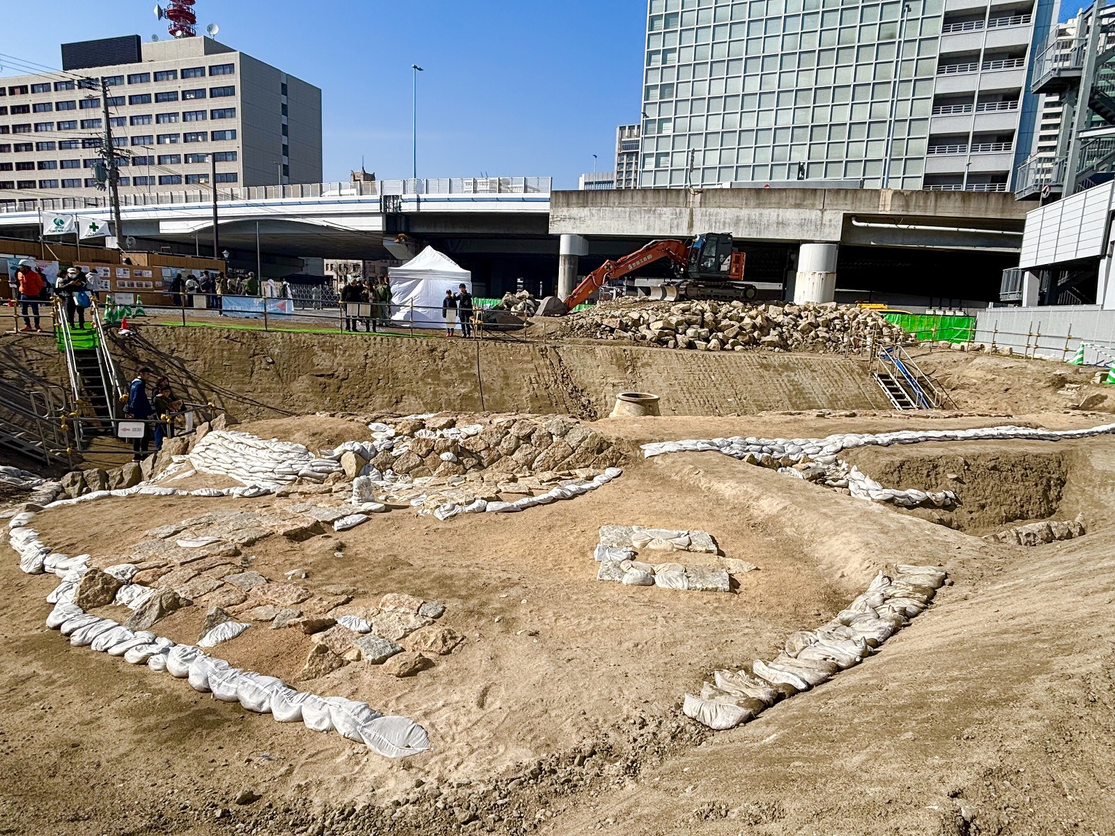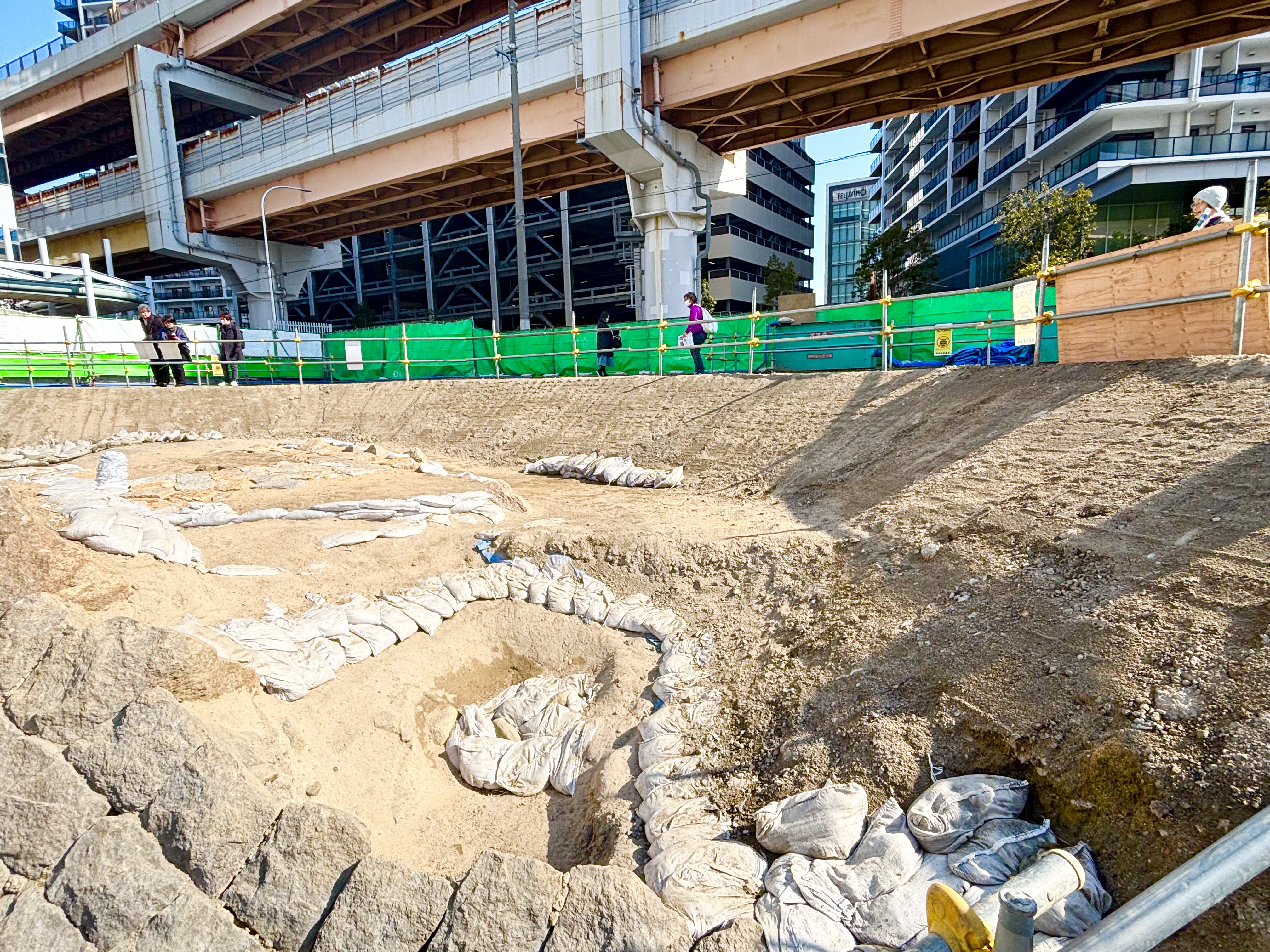 ③幕末の神戸海軍操練所から明治時代の神戸港第一波止場にかけての遺構が重層的に重なり、古い構造物を活用しながら神戸港が発展してきた痕跡を確認できた