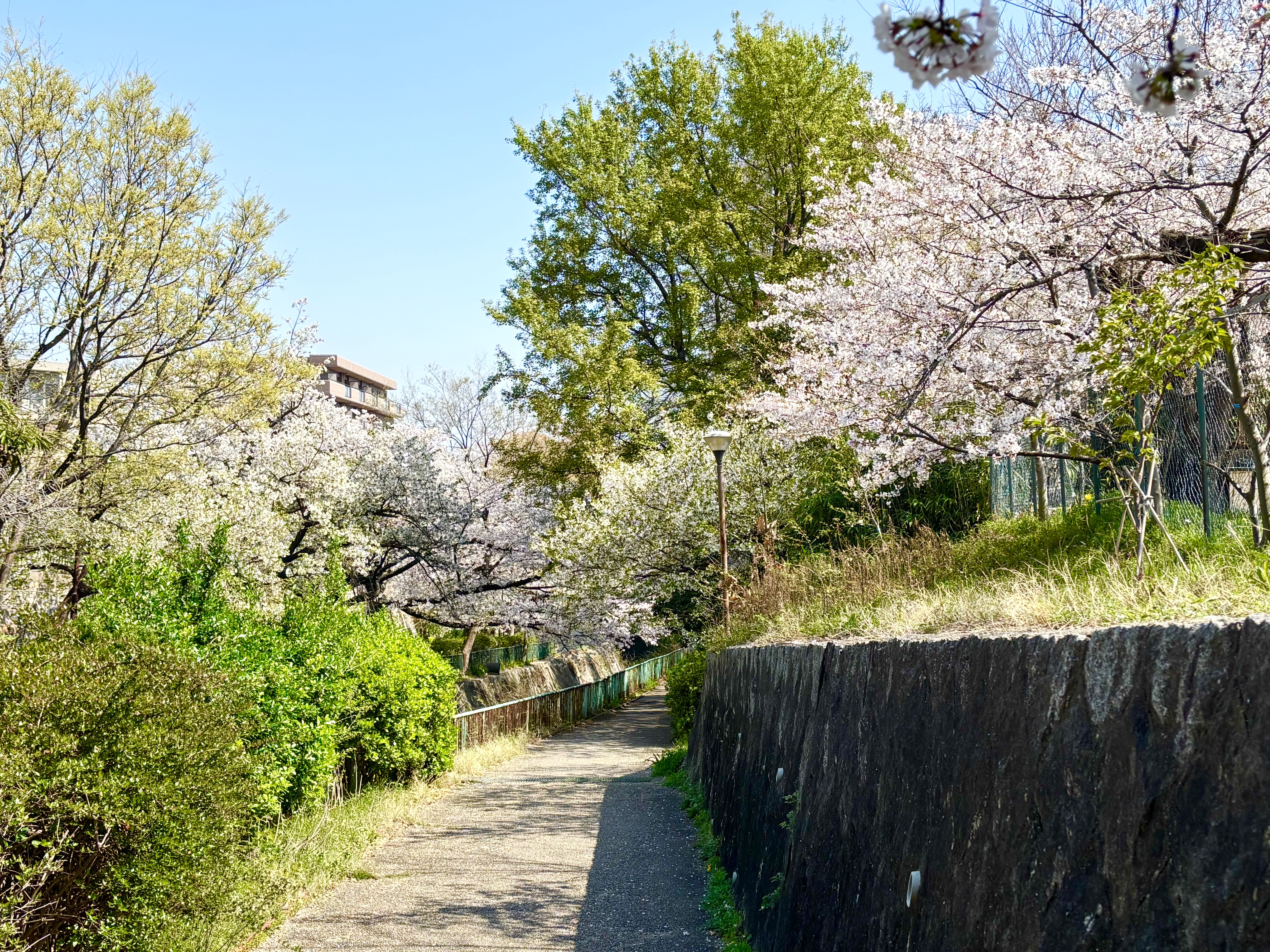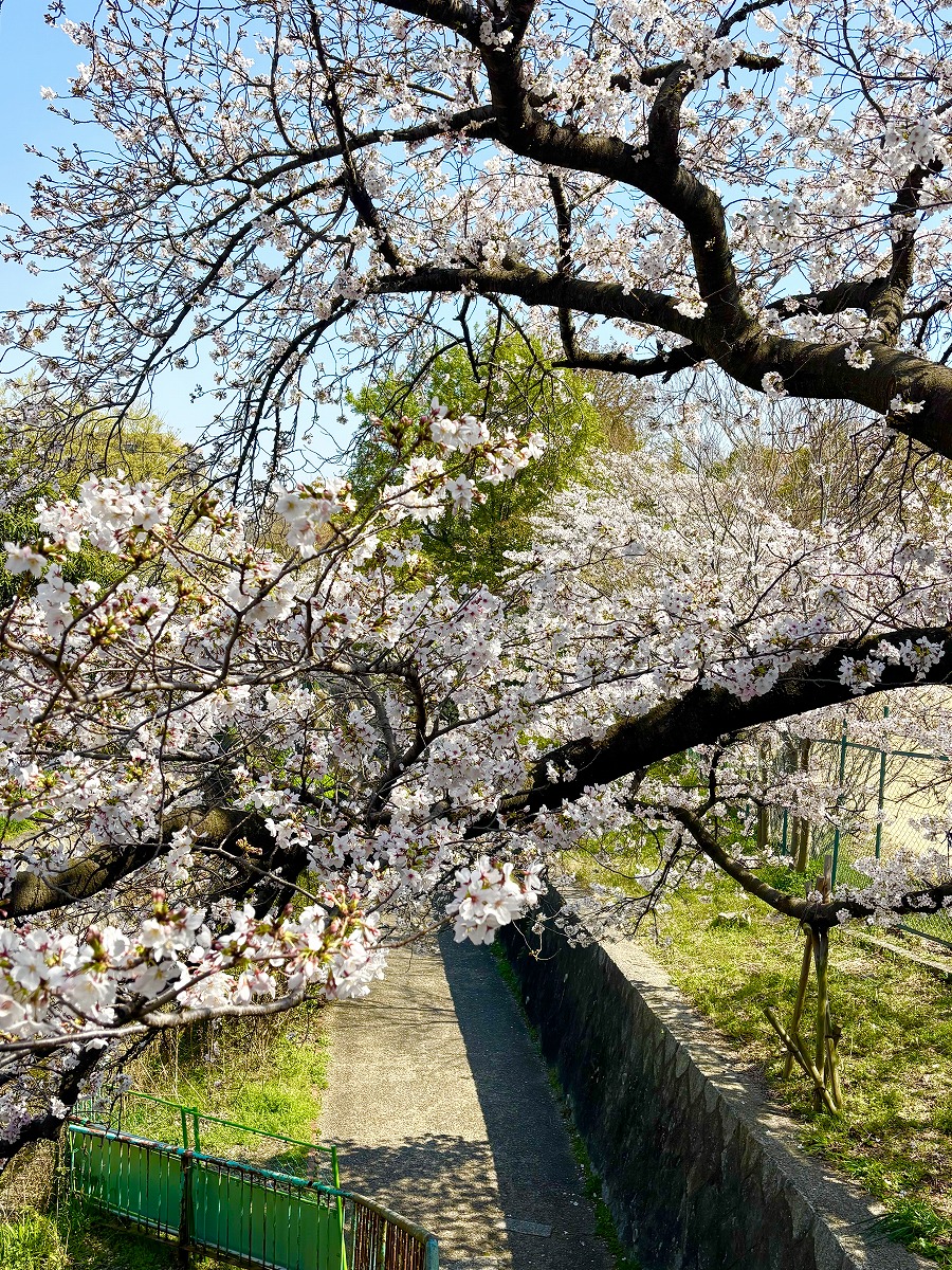 阪急王子公園駅北側にある青谷川沿いの「青谷川沿い~王子公園ジョギングコース」で、春のお花見散歩を楽しんでみました。