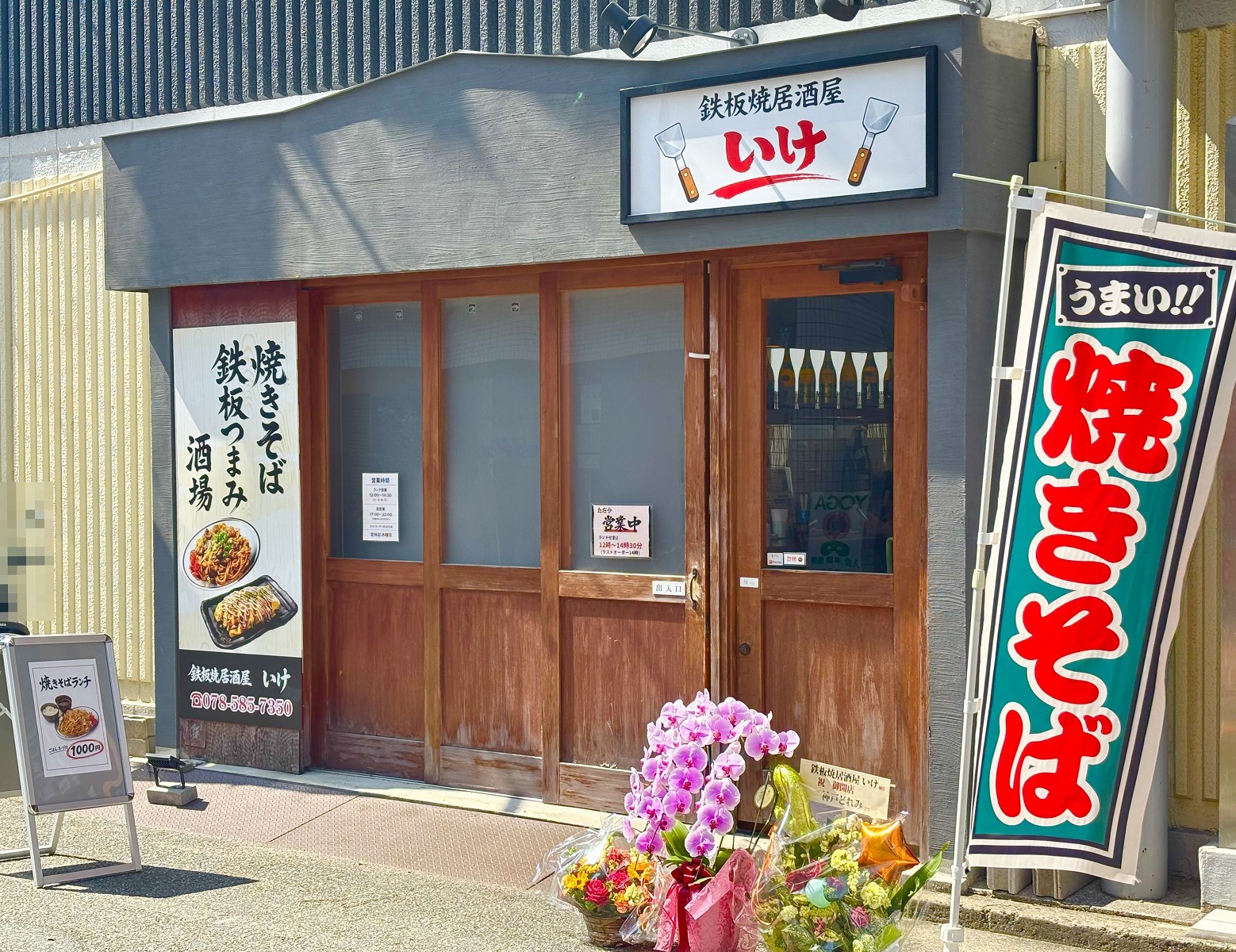 神戸・王子公園エリアに、鉄板焼居酒屋「いけ」さんが3月18日(水)オープン!焼きそばセットのランチに、鉄板つまみとお酒も楽しめるみたい♪ #開店情報 #焼きそば