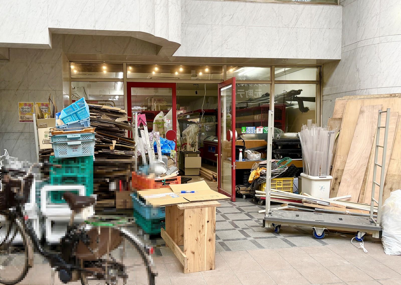 段ボールの奥の壁に、スタッフ募集のご案内が掲示されていました。プロマートさんは業務用の食品スーパーですが、5月上旬頃のオープン予定ということで、どうぞお楽しみに♪