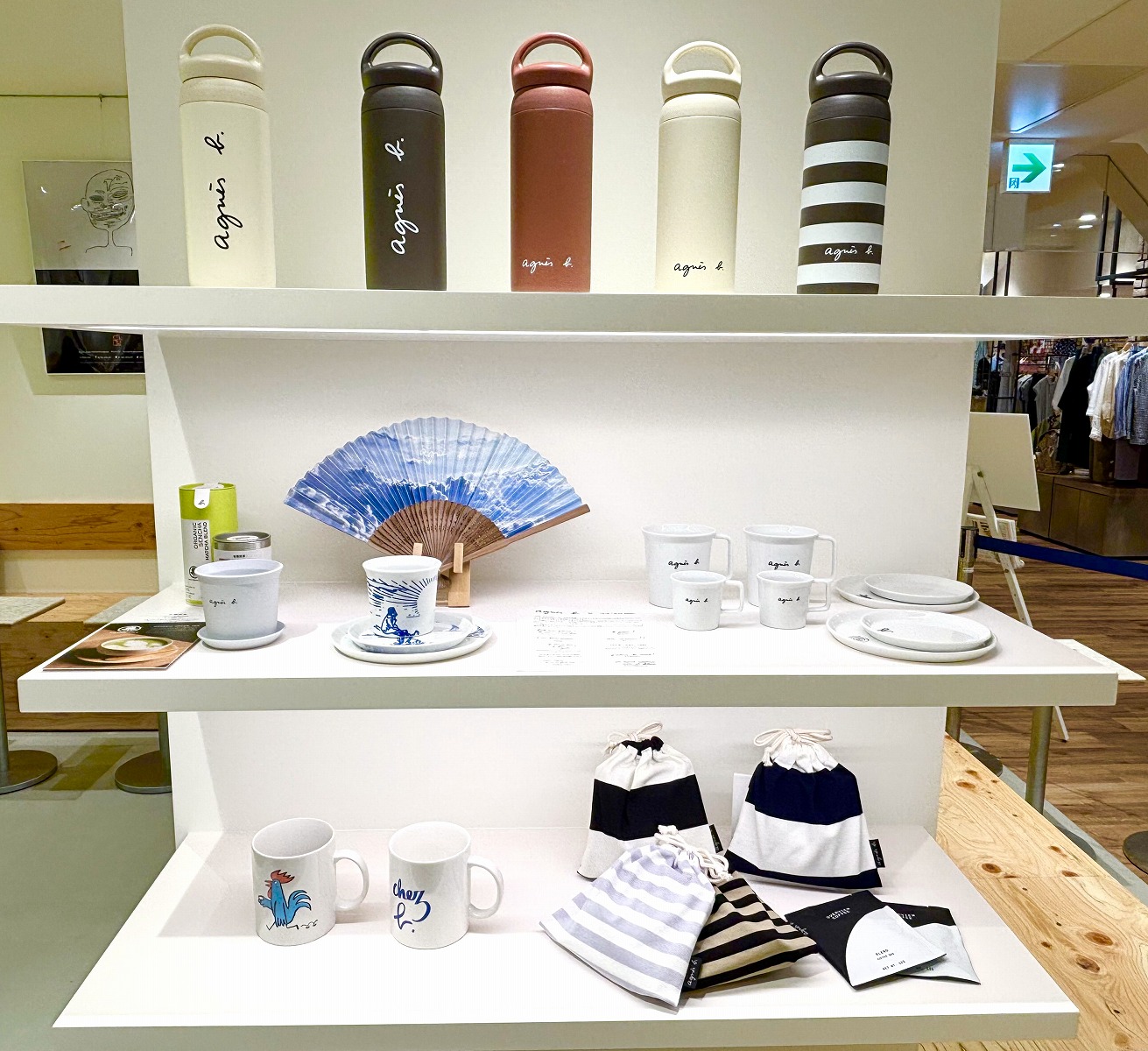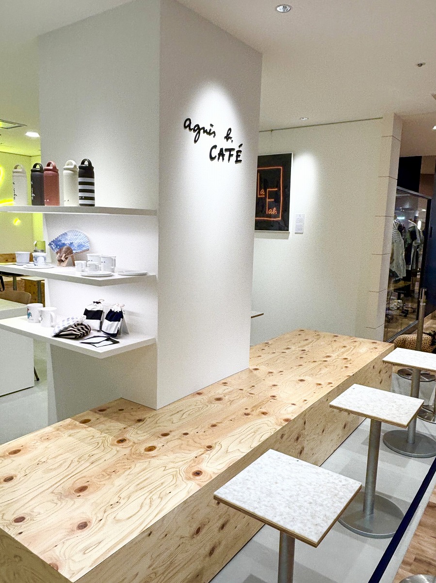 すぐ向かい側には、お洋服やバッグのアニエスベーショップがあるので、お買物の合間にカフェでくつろいでいただけますよ♪