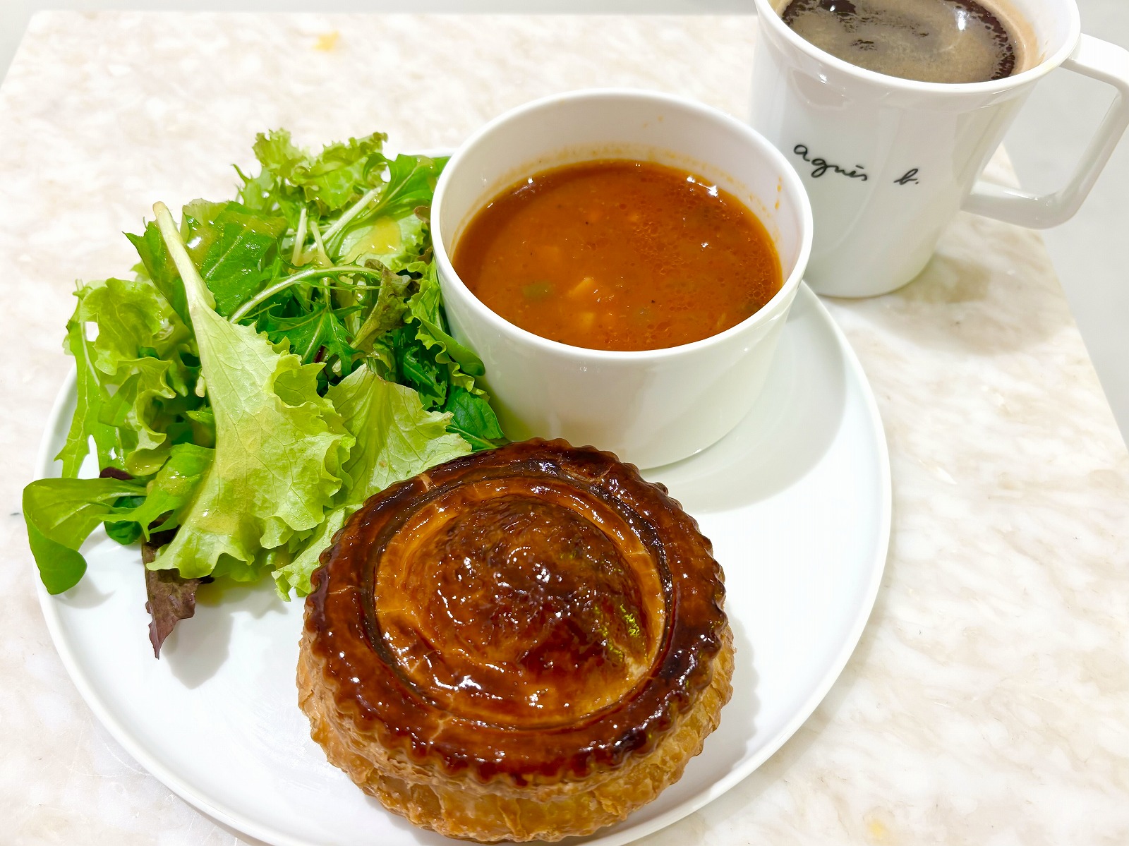 この日は12時を過ぎていましたので、「神戸牛のミートパイセット」(ドリンクはホットコーヒー)をオーダーしてみました。
