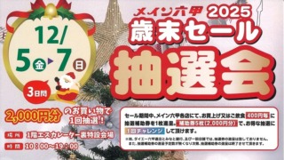 神戸・メイン六甲で「2025歳末セール抽選会」が12月5日(金)~7日(日)の3日間で開催!メイン六甲でのお買物や飲食で、ステキな賞品をゲットしてね♪ #メイン六甲 #歳末セール抽選会 #イベント