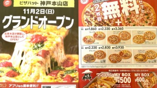 東灘・国道2号線沿いに「ピザハット 神戸本山店」さんが11月2日(日)にグランドオープン!お持ち帰り対象ピザ限定で、2枚目が無料セットもあるみたい #移転オープン #新店情報 #東灘区 #ピザハット